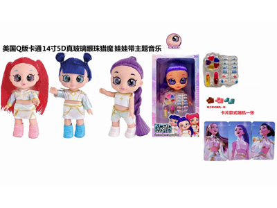 1比1美国Q版卡通5D真眼珠14寸全搪胶猎魔娃娃功能带音乐主题曲带金貂卡片一张 |