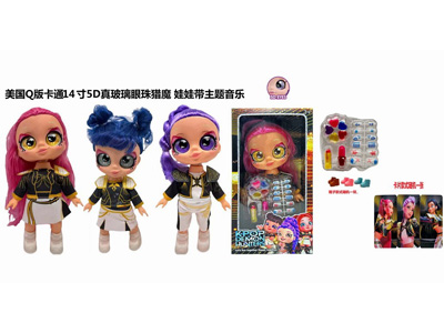 1比1美国Q版卡通5D真眼珠14寸全搪胶猎魔娃娃带音乐主题曲带金貂卡片一张带真人化妆品,唇膏,指甲油,化妆油,美甲 4件套 |