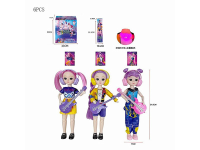 猎魔女团 K-POP12寸17关节8D真眼盲盒包装带灯光音乐主题曲鲁米 佐伊 米拉 搪胶公仔(6PCS) |