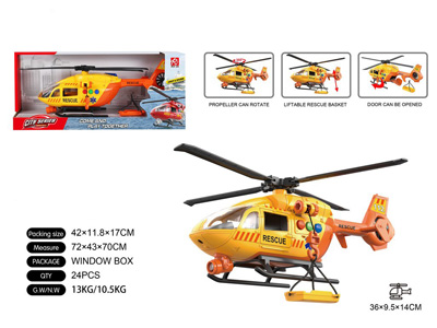 1:16仿真救援直升飞机(螺旋桨回力)灯光,声音,螺旋桨回力,升降吊篮 |
