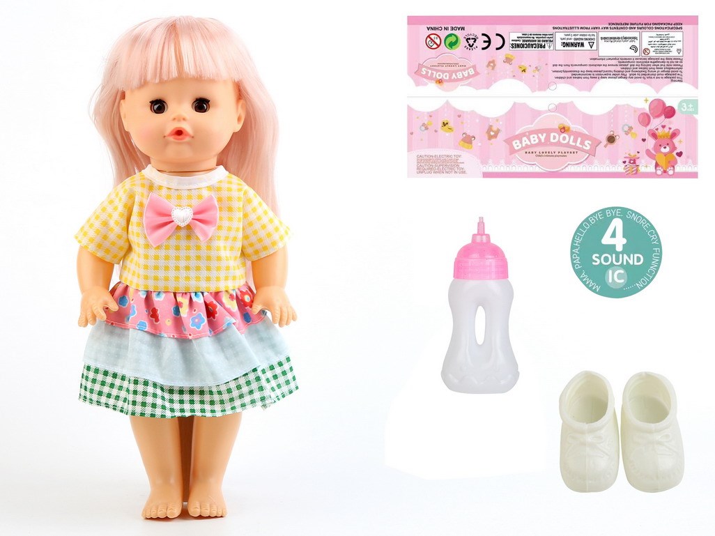 14寸娃娃活眼公仔33CM直脚喝水尿尿带4声IC、奶瓶、鞋子 |