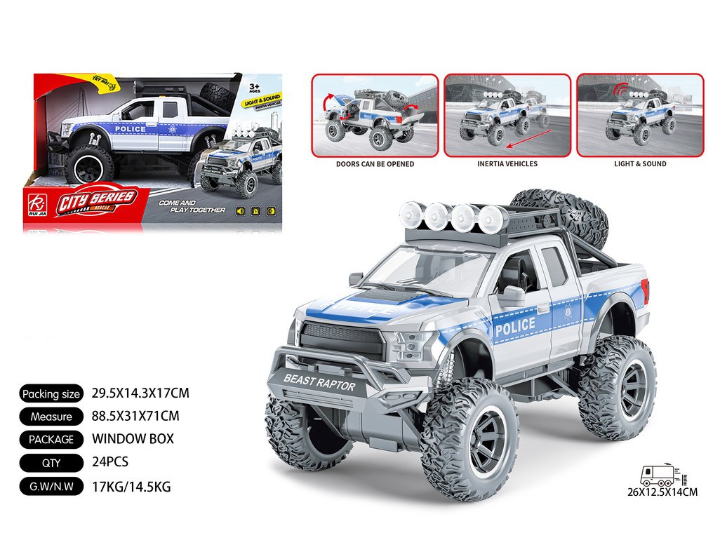 1:16大轮皮卡警车-四开门-灰惯性,灯光,声音,开门 |