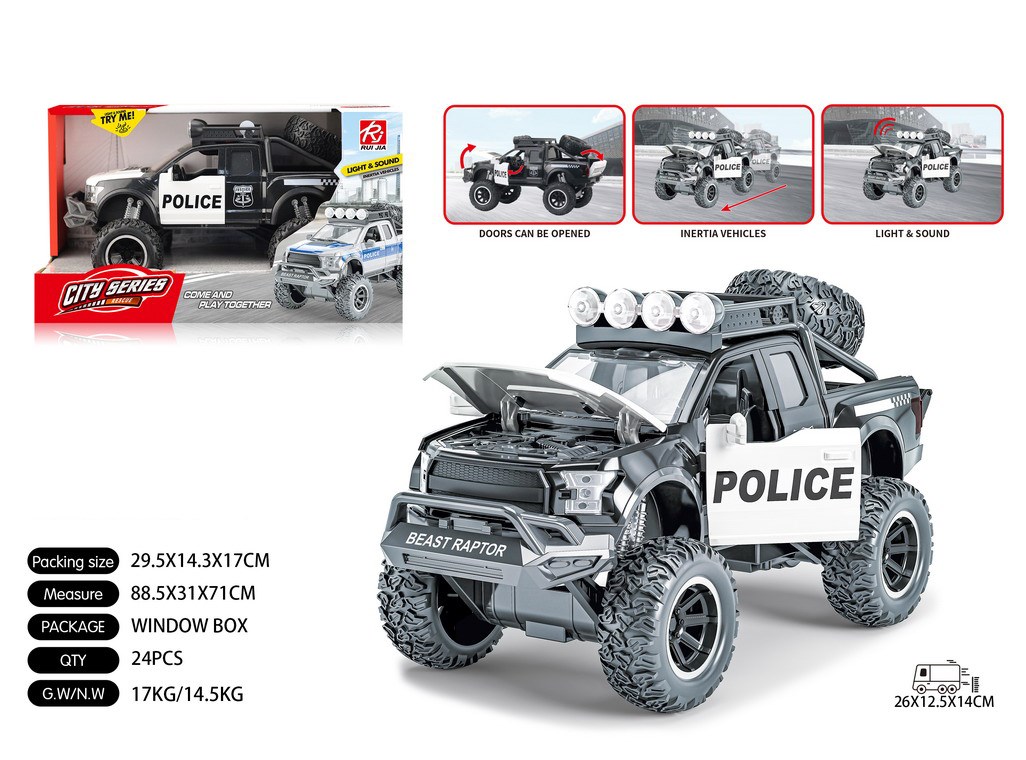 1:16皮卡警车-四开门-黑惯性,灯光,声音,开门 |