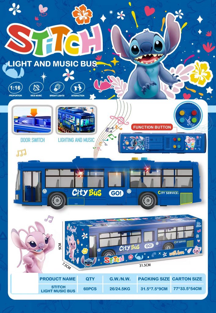 史迪仔灯光音乐惯性早教玩具公交车大巴车(蓝色) |